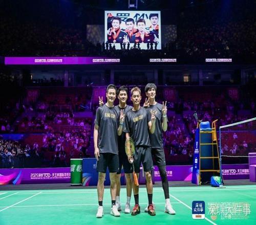 在延续赛场精彩之余,一系列充满情怀的互动环节更将现场气氛推向高潮。赛事次日,曾经的国羽男单林丹、鲍春来携手双打的“风云组合”蔡赟、傅海峰亮相,“国羽F4”惊喜合体,以一场别开生面的双打赛,唤醒一代球迷的青春记忆。
