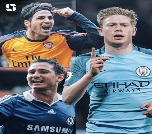 英超00年以来历年助攻王:德布劳内、亨利单赛季20次助攻最高